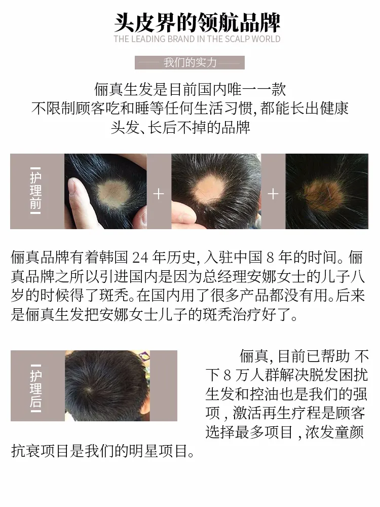 在韩国有24年历史,进入中国8年的国内头部健康管理巨头--俪真生发品牌,已经帮助不下8万的掉发人群解决了头皮问题的困扰。